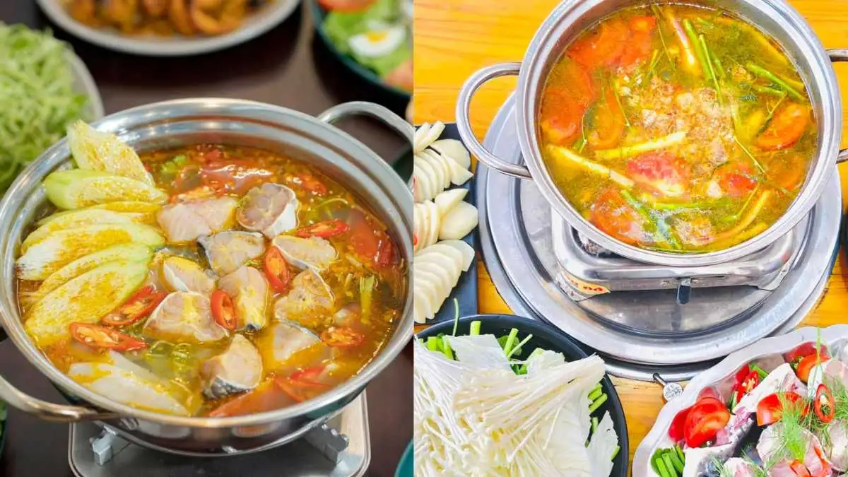 • Nước lẩu: Chua thanh từ măng chua, kết hợp vị ngọt tự nhiên của cá và các loại rau.