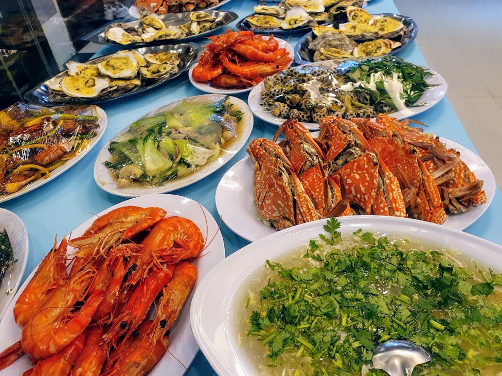 - Hải sản nướng: Tôm sú nướng muối ớt, mực nướng sa tế, hàu nướng phô mai.