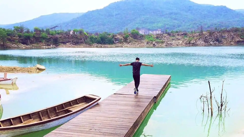 Hồ Đá Xanh nằm gần núi Dinh, nổi bật với mặt nước xanh ngọc bích quanh năm. Không gian ở đây mang vẻ đẹp hoang sơ, bình lặng, rất thích hợp cho những ai yêu thích sự yên tĩnh. Nhiều cặp đôi cũng chọn nơi này làm bối cảnh chụp ảnh cưới vì khung cảnh thơ mộng, huyền ảo. Đến Hồ Đá Xanh, bạn có thể thuê những chiếc xích đu, bè gỗ để tạo nên những bức hình lung linh. Tuy nhiên, do hồ khá sâu nên du khách cần chú ý an toàn khi tham quan.