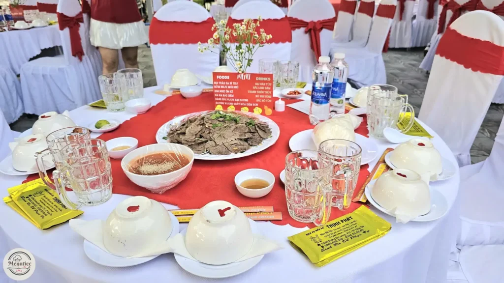 Bàn ngồi ăn tiệc cũng được Thịnh Phát VT bày trí một cách tỉ mỉ và lịch sự nhất.