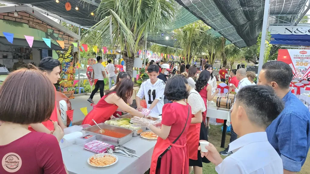 Chương trình tiệc bao gồm các hoạt động phong phú như văn nghệ, gameshow và phần thưởng hấp dẫn. Nhân viên được khuyến khích tham gia trình diễn tài năng, mang đến những tiếng cười và niềm vui cho tất cả mọi người. Bên cạnh đó, món ăn đa dạng từ các món truyền thống Việt Nam đến các món mang phong cách châu âu, đã khiến cho bữa tiệc trở nên phần thú vị hơn.